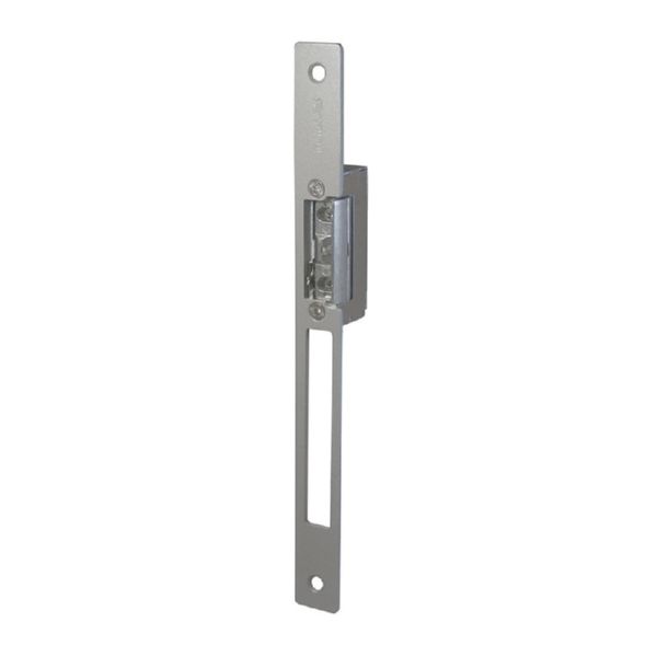 Multivoltaje. Profundidad 25,5 mm. Pestillo radial. Reversible. Automático deslizante. Frontal pintado gris. Frontal largo