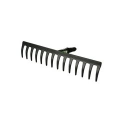 Acero con recubrimiento de pintura epoxy antióxido. Conexión a mangos intercambiables de aluminio. Rastrillo 14 dientes