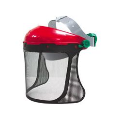 Visor abatible malla metálica para trabajos forestales. Arnés Advance Rodeo con volante de ajuste y banda desudadora. -