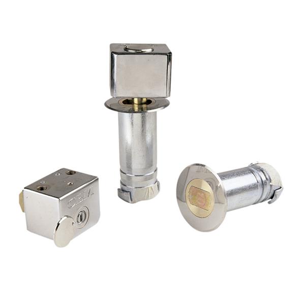 Cilindro de seguridad con 3 llaves de puntos. Distancia entre tornillos 42 mm. Incluye cabezal apertura superior y cerradero cilíndrico empotrable. 2 unid. Llaves iguales.