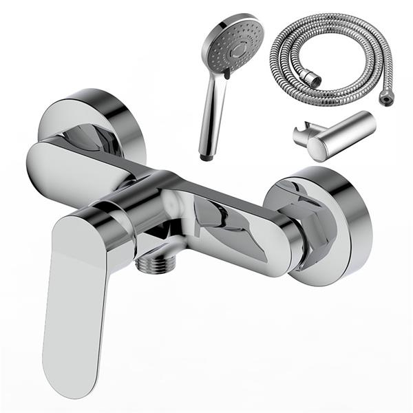 Latón cromado. Cartucho cerámico ø 30 mm. Ducha. Flexo y mango ducha.