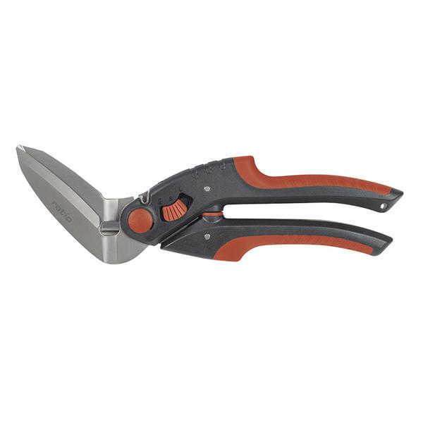 Mangos bimaterial antideslizantes. Incluye selector para gran apertura "L", más reducida "S" y función cierre "C". Hojas de acero Inox 420 acabado pulido de 3,5 mm de espesor. Con filo (53±2 HRC) antideslizante gracias al microdentado. Cabeza angulad 250 mm.
