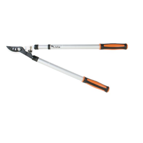 Brazos tubulares telescópicos de aluminio. Corte deslizante (Bypass). Cuchilla recubrimiento antiadherente. Empuñaduras ergonómicas antideslizantes. ø corte 25 mm. Longitud 63/95 cm.
