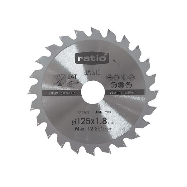 Para cortar madera, plástico, cartón yeso y aluminio. Disco de carburo tungsteno con pastilla de metal duro. No apto para madera con clavos. Norma EN 13236 y EN 847-1 : 2013. ø 125x1,8 mm. 24 dientes.