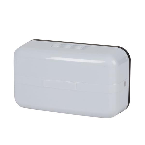 Tapa blanca / base negra. Uso interior. Instalación sobre superficie. Uso discontinuado. Potencia de sonido 80 dB. Medida: 13,5x5xh.8 cm. Tapa blanca / base negra.