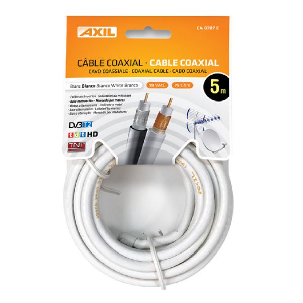 Cable blindado de baja atenuaci?n para la ?ptima transmisi?n de la se?al de TV. Flexible para una f?cil instalaci?n. Bobina colgante 5 m.