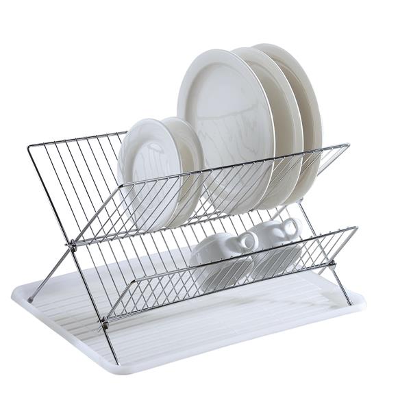 Acero cromado. Con bandeja recogegotas. Abierto: 44x32xh.25 cm. Plegado: 44x4xh.36 cm.