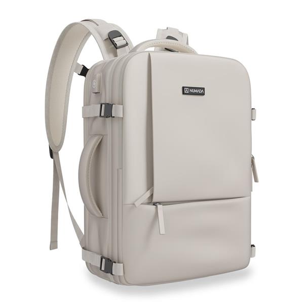 Color negro. Impermeable. Múltiples bolsillos. Puerto cargador USB. Apta compañías aeréas. Color beige 25x20xh.40 cm. 20 litros.