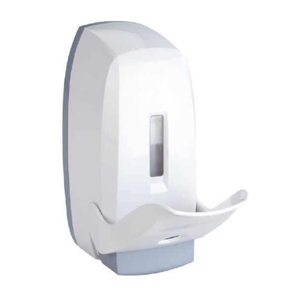Aplicaci?n higi?nica utilizando manos o codos. Apto para desinfectantes, jabones l?quidos, lociones, champ?s. Dep?sito rellenable de 450 ml con visor para comprobar el nivel. Tacos y tornillos o cinta adhesivo de doble cara para fijar sin taladrar.. . . Blanco.