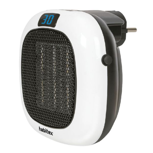 Termostato digital regulable entre 15 y 30°. Display led. Con conexión directa al enchufe, el cual es giratorio 90 ° para facilitar su instalación a la toma de corriente. Protección sobrecalentamiento. Potencia máx.:700 W. 2 velocidades (máx. y mín.) Temporizador 12 h. Dimensiones:14x7Xh.14 cm.