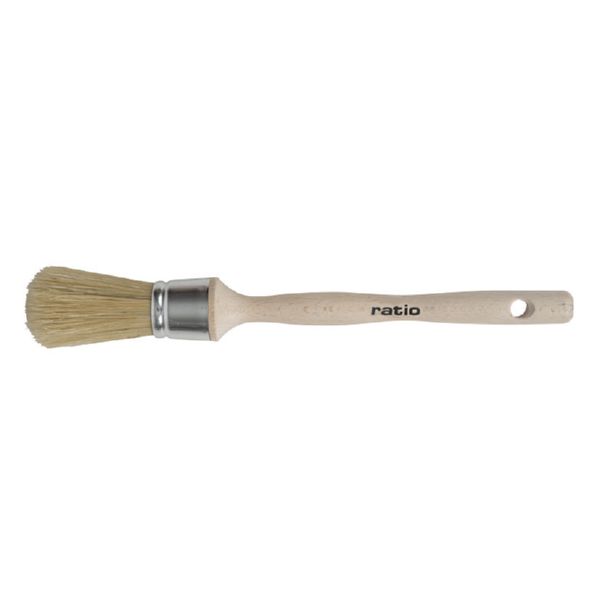 Fibra de cerda especial con PET. Especial para recortar. Su forma redondeada facilita la carga de pintura para lograr un acabado más uniforme con una óptima nivelación. Acabado de precisión. Para todo tipo de pinturas. Mango ergonómico de madera encerada y barnizada. Virola de aluminio anodizado. Nº 12.